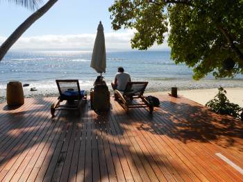 As exhilarating as it is to swim with sharks, I have to admit I was even more jazzed when Taz and I climbed up the boat’s ladder, missing nary a limb, for our return to Royal Davui, the secluded island resort where we were staying.